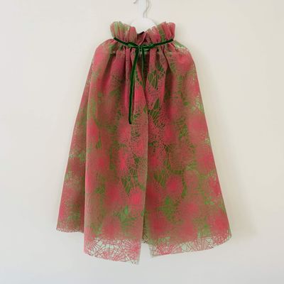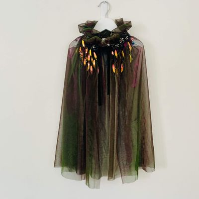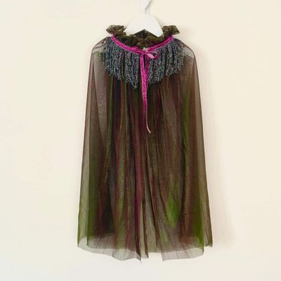 Polyester cape, crotchet, sequin & plastic trim and velveteen tie