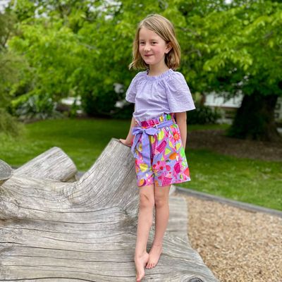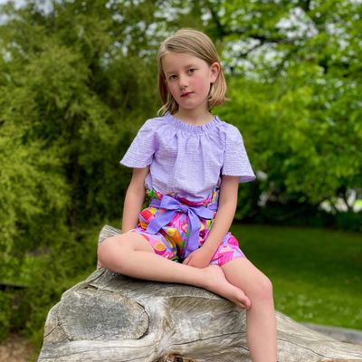 Elasticated waistband, angled side pockets, front pleats and contrast removeable waist tie