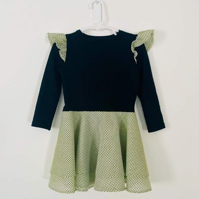 Cotton elastane body and sleeves, Polyester stiff organza layered skirt and shoulder detail